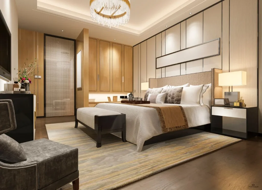 - Guest Rooms: Neutral tones, foldable desks, and ensuite bathrooms.